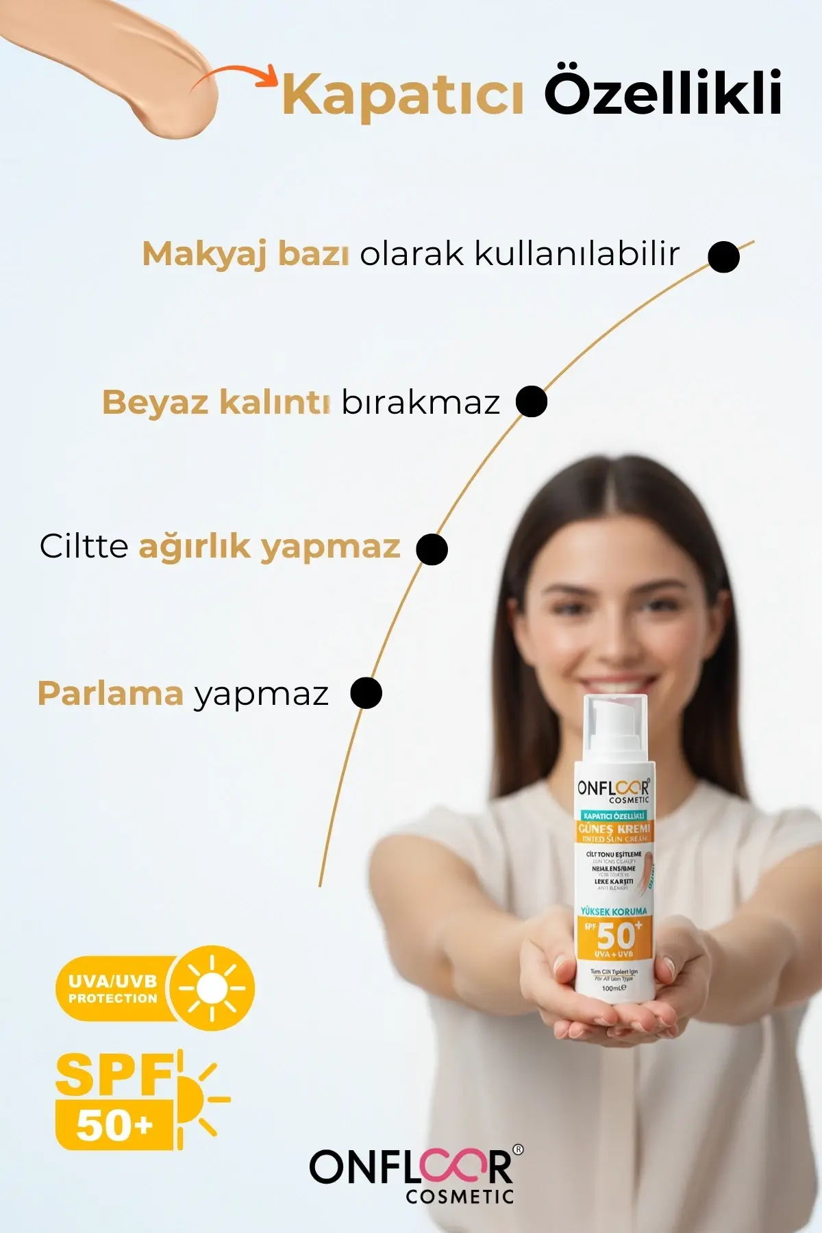 Onfloor Güneş Kremi SPF 50+ 100 ml – Tinted, Cilt Tonu Eşitleyici, Yüksek UVA + UVB Koruma