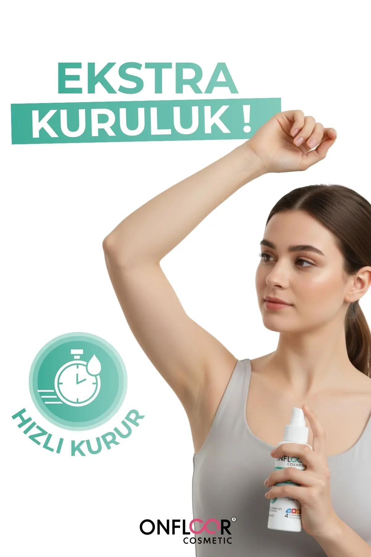 Onfloor Terleme Önleyici Sprey 50 ml – Ter Kokusunu Giderici, Gün Boyu Ferahlık, Cilt Dostu Pudrasız Formül